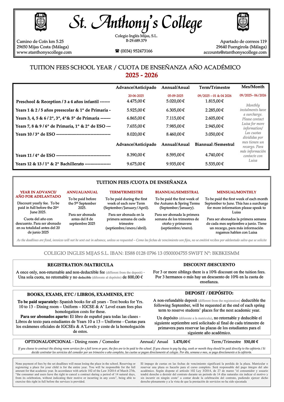 St Anthony´s College, Camino de Coin,